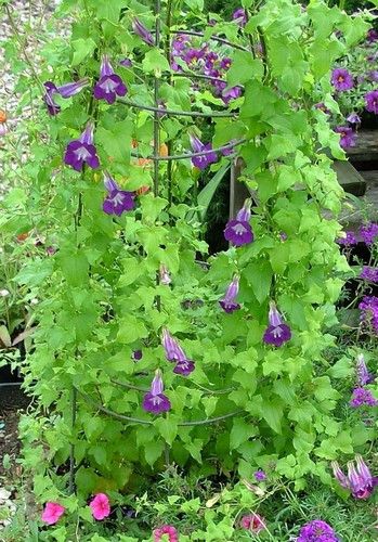 Виды и сорта: Почти у всех видов стебли нужно подвязывать. Короткие стебли (1,2 м) у А. краснеющей (A. erubescens), или маурандии краснеющей (Maurandya erubescens), цветущей розовыми цветками с кремовым зевом; длинные (до 3 м) — у А. Баркли (A. barclayana). В продаже бывают сорта «Mixed» и «Jewel Mixed» А. лазящей (A. scandens). У А. львинозевоцветковой (A. antirrhiniflora) цветки напоминают цветки львиного зева. У А. Пурпуса (A. purpusii) сорт «Victoria Falls» более яркие розовые цветки длиной до 5 см. У А. антнррннумоцветковой (A. antirrliiniflora) также разнообразно окрашенные цветки похожи на цветки львиного зева.