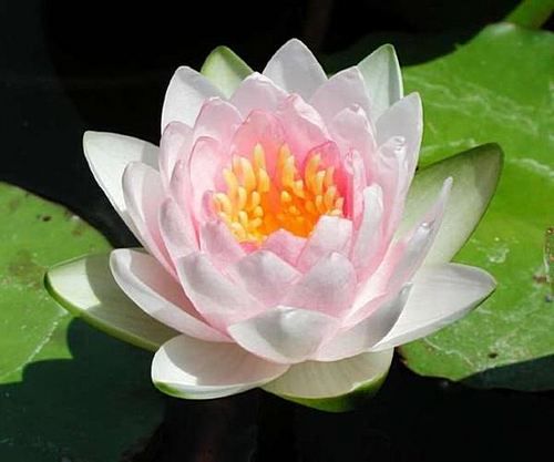 Кувшинка селекции питомника Латур-Марлиака 1924 г. Цветы очень бледно-розовые, в центре более темные, у бутонов лепестки почти белые, форма цветка хризантемовидная, диаметр цветка 12 см. Листья почти круглые, зеленые, край листа чуть выше воды или изогнут, разрез закрытый, частично перекрывающийся, лист около 24 см в диаметре. Хорошо подходит для садового пруда.