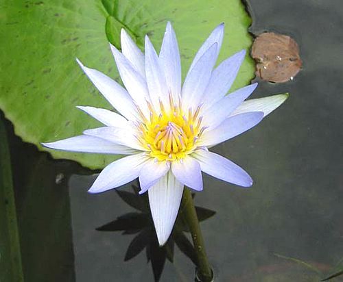 Кувшинка селекции Уильяма Трикера или Генри Конрада 1897 г. Цветок светло-голубой, звездновидной формы, 20-28 см в диаметре. Соцветие расположено до 20 см над поверхностью воды. Листья круглые, оливкового цвета с небольшими пятнами, до 35 см в диаметре. Край листа волнистый и зубчатый. Нужно много пространства в ширину, вид для больших прудов. Теплолюбива.