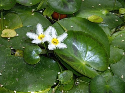 Обычно выращивают Б. щитолистный (N. peltata), который в каталогах иногда называют вилларсия Беннетта (Villarsia bennettii), или лимнантемум кувшинковидый (Limnanthemum nymphoides). Миниатюрные, часто с волнистыми краями и коричневыми пятнами листья диаметром до 5 см напоминают листья кувшинки. Желтые цветки собраны в небольшие соцветия, достигают 4 см в диаметре и больше похожи на цветки лютика, чем водяной лилии. Края лепестков бахромчатые. Пока не укоренятся кувшинки, болотноцветник может сослужить хорошую службу, но он слишком быстро разрастается. Есть более теплолюбивый вид Б. индийский (N. indica), у него цветы более бахромчатые. Есть разновидности с белыми и желтыми цветами.