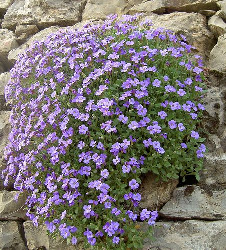С весны до начала лета цветущие коврики обриеты украшают подпорные стенки и камни в альпинарии. Это неприхотливое растение с опушенными серо-зелеными зимующими листьями и цветками диаметром до 1,5 см.