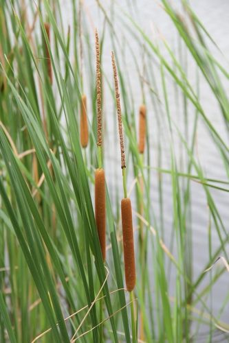 Наиболее крупный в роду вид — Р. широколистный (Т. latifolia), больше известный под неправильным названием камыш. У него широкие листья и достигающие 1,5-2 м в высоту стебли с коричневыми соцветиями-початками. Глубина посадки 8-25 см; пригоден только для больших озер. Р. узколистный (Т. angustifolia), с изящными зелеными листьями и стеблями высотой до 1,5 м, также непригоден для обычного пруда. В пруду средних размеров можно высадить Р. Лаксманна (Т. laxmannii, или Т. stenophylla), который в июне-октябре украшен небольшими коричневыми початками. Листья серо-зеленые, высота 1 м, глубина посадки 2,5-15 см. Для небольшого пруда подходит только Р. малый (Т. minima) с короткими толстыми початками, достигающий 30-50 см в высоту; его высаживают на глубину 2,5-10 см.