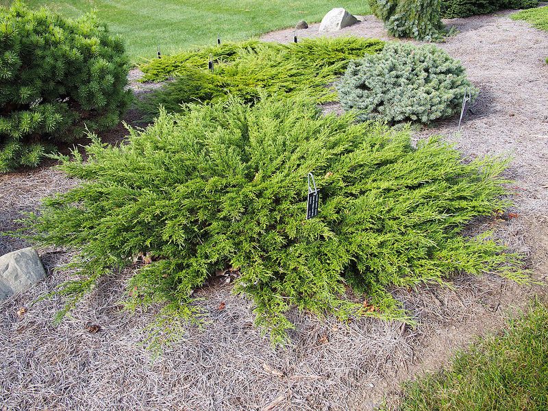 Можжевельник — звезда среди хвойных растений альпинария. Низкорастущие можжевельники с расположенными ярусами ветвями — замечательные почвопокровные растения. В настоящее время более популярны карликовые и почвопокровные можжевельники. В США и Англии уже давно поняли ценность низкорослых можжевельников, в то время как в России они лишь совсем недавно стали по-настоящему популярными. У этих хвойных растений с крошечными листьями два огромных достоинства: простота выращивания и привлекательная форма роста. Несколько слов о простоте выращивания: можжевельники чрезвычайно морозостойки, не боятся холодных ветров на открытых местах, нетребовательны к почве, им вполне подойдет и известковая, и кислая, и каменистая почва. Кроме того, они гораздо засухоустойчивее большинства хвойных растений, но сухим и тенистым местам предпочитают сухие и солнечные. Эти растения хорошо переносят обрезку. В середине лета стригут живые изгороди и подрезают стелющиеся формы. Можжевельники нетолько неприхотливы — у них привлекательные листья и крона. У стелющихся можжевельников листва может быть зеленой, серой, голубой, золотистой и бронзовой. Кроме того, есть пряморастущие можжевельники с кроной в виде конуса, широкой колонны, холмика, карандаша или аккуратной пирамидки. Интересны и листья, которые бывают двух типов. Есть листья мелкие (0,5-1 см), узкие, шиловидные — их называют молодыми, или ювенильными, и есть листья чешуевидные, еще более мелкие — их называют зрелыми, или старыми. У некоторых можжевельников молодые листья быстро сменяются зрелыми, но у других видов даже на взрослых деревьях преобладают молодые листья. Шишки размером с горошину образованы сросшимися мясистыми чешуйками.