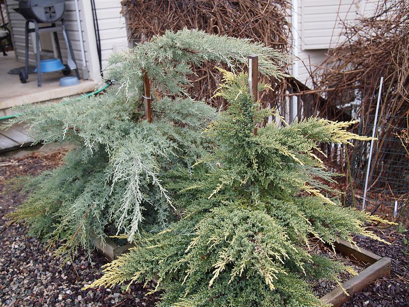 Виды и сорта: М. казачий (J. sabina) «Tamariscifolia» издавна пользуется популярностью. Если его горизонтальные ветви не обрезать, он разрастается до 2,5-3 м в диаметре, в высоту же растение не превышает 30 см. М. горизонтальный (J. horizontalis) с характерным голубоватыми листьями еще меньших размеров (15 см в высоту, 1,5 м в диаметре). Популярные сорта включают «Giauca» (голубой со стальным отливом), «Hughes» (серо-зеленый) и «Bar Harbor» (серо-голубой). Сорт М. обыкновенного (J. communis) «Depressa Aurea» образует широкий куст высотой 30-60 см с золотистой летом и бронзовеющей зимой хвоей. Другие раскидистые сорта «Repanda» (зеленый) и «Hornibrookii» (зеленый). Растения многих других видов не превышают во взрослом состоянии 1 м в высоту — например, М. средний (J. media) «Old Gold» — раскидистый, золотистый, карликовый. Более рослые сорта это «Pfitzeriana» с сильными ветвями, растущими под углом около 45 градусов, с грациозно свисающими кончиками. Он сильно разрастается вширь, как и его золотистый вариант сорт «Pfitzeriana Aurea». М. чешуйчатый (J. squamata) «Meyeri» — голубовато-зеленый, с поникающими кончиками ветвей. Его сорт «Blue Carpet» — с голубыми листьями, со временем разрастается до 1,5 диаметре. Если вам нужно растение поменьше, купите «Blue Star» этот сорт не превышает в диаметре 1 м. М. обыкновенный (J. communis) «Compressa» — серо-зеленый, колонновидный. У достигающего в высоту 4,5 м и более сорта «Hibernica» узко-колонновидная крона. М. лежачий (J. procumbens) сорт «Nana» — еще один стелющийся можжевельник. Он отличается от предыдущих загнутыми вверх кончиками ветвей. М. китайский (J. chinensis) представлен пряморастущими деревьями и раскидистыми кустарниками. Сорт «Pyrairddalls» — медленно растущее дераво с конической кроной, как и другие сорта М. китайского, почти сплошь покрытое молодой листвой. К древовидному типу относятся также сорта «Aurea», «Obelisk» и «Stricta». Чтобы вырастить раскидистый куст, посадите «Japonica» или «Kaizuka». И наконец, есть М. виргинский (J. virginiana) и его популярные сорта «Skyrocket» (узко-колонновидное дерево) и «Grey Owl» (серебристо-серый раскидистый кустарник).