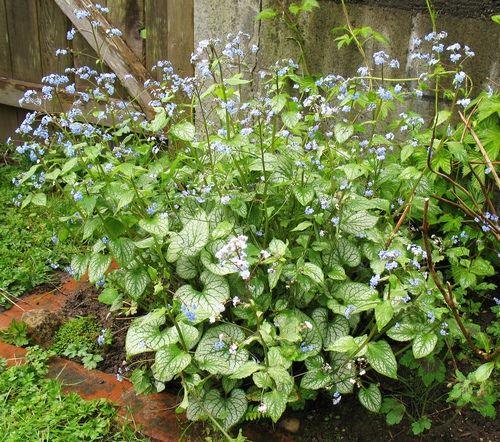 Почвопокровное растение для высаживания под деревьями или по краю бордюра. Крупные кистевидные соцветия из мелких звездчатых цветков похожи на соцветия незабудки, однако при взгляде на большие сердцевидные листья становится понятно, что это не незабудка. В засуху требует обильного полива.