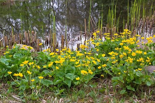 Калужница с полным основанием считается одним из самых популярных прибрежных растений. Она неприхотлива, некоторые низкорослые виды можно выращивать по берегам даже совсем небольших прудов, высаживая на небольшую глубину, в том числе в болотце. Самое большое преимущество калужницы — раннее цветение: ее похожие на цветки лютика цветки распускаются над округлыми или сердцевидными листьями уже в апреле и возвещают о начале нового сезона цветения.