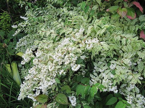 Виды и сорта: Раньше всех зацветает Д. розовая (D. rosea) высотой до 1 м, дуговидно поникающие ветви которой в мае украшают кисти розовых цветков. У сорта «Carminea» цветки пунцово-красные. Популярная Д. шероховатая (D. scabra) выше ростом (2 м), цветет в июне-июле большими белыми соцветиями. Махровые сорта включают «Plena» и «Candidissima» Столь же высокорослая Д. великолепная (О. magnifica) обильно цветет махровыми белыми цветками. Густо-розовая Д. изящнейшая (D. elegantissima) «Rosalind» образует небольшой, до 1 м в высоту, округлый куст. Самые крупные цветки у достигающих в высоту 2 м гибридов, таких как Д. «Magicien» (розовые цветки с белой каймой) и Д. «Mont Rose» (цветки с пунцовыми пятнышками).
