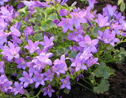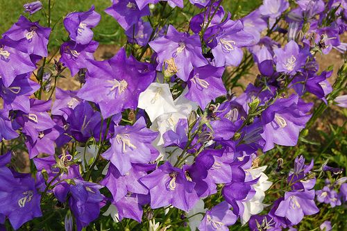 теблей от 15 см до 2 м. Высокорослые сорта нужно подвязывать к опоре; цветение будет более длительным, если увядшие цветки вовремя удалять. Клумбовые колокольчики — сорта К. среднего с волнистыми опушенными листьями и колокольчатыми цветками на многочисленных цветоносах — выращивают в основном в двулетней культуре. Наиболее многочисленна группа бордюрных колокольчиков, где есть сорта различной высоты, цветущие с июля по сентябрь. В зависимости от вида цветки располагаются у них на стебле различным образом. Почти все растения этой группы хорошо стоят в срезке. Колокольчики для альпинария в целом неприхотливы, но им нужна некислая и хорошо дренированная почва. Эти сорта обильно цветут в июне-июле.