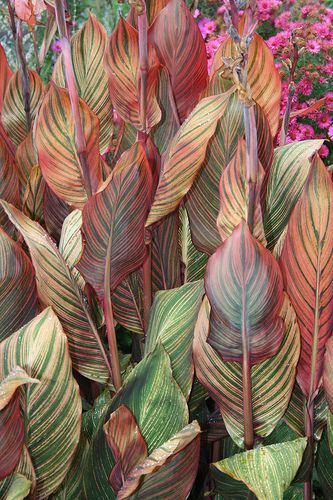 Корневищное растение, замечательно выглядит в центре клумбы или контейнера. Листья напоминают по форме весло, часто окрашены в разные цвета, в длину достигают 30 см и более. Яркие цветки до 12 см в диаметре, цветение продолжается с июля до заморозков. Высаживают на защищенном от ветра солнечном месте.