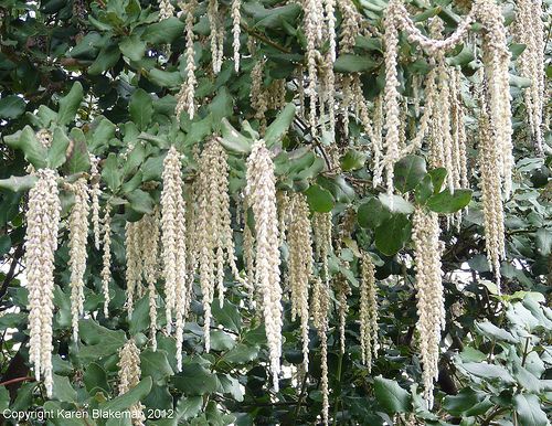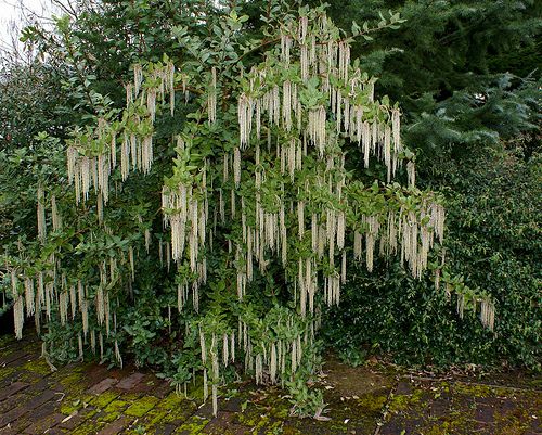Виды и сорта: В продаже бывает только Г. эллиптическая (G. elliptica), достигающая 2,5-3,5 м в высоту. Ранней весной мужские растения украшают сережки длиной 15-25 см, поначалу серовато-зеленые, а затем приглушенно-кремовые. Стоит посадить не исходный вид, а сорт «James Roof» с более толстыми сережками длиной до 35 см. Любители диковинок могут поискать Г. иссакуахенскую (G. issaquahensis) «Pat Ballard» с лиловатыми сережками и Г. Фремона (G. fremontii) с перекрученными листьями и мелкими сережками.