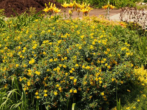 Виды и сорта: 3. чашечковый (Н. calycinum) достигает в высоту 0,5 м и сильно разрастается. Полезное растение, но если не сдерживать его рост, оно может заполонить все вокруг. Есть несколько не так сильно разрастающихся видов высотой 0,5-1 м. У 3. Мозера (Н. moserianum) «Tricolor» мелкие цветки, но эффектные зелено-кремово-розовые листья. 3. мужекровник (Н. androsaemum) — красочный кустарник размером 1х 0,5 м с желтыми цветками, черными плодами и красными осенними листьями. Пряморастущий 3. израстающий (Н. prolificum) славится обильным цветением. Полутора метров в высоту достигают 3. Форреста (Н. forrestii), или 3. раскидистый (Н. patulum) «Henryi», с крупными цветками и бронзовыми плодами, и распространенный 3. непахучий (Н. inodorum) «Elstead» с мелкими звездчатыми цветками и привлекательными красными плодами. Красные плоды также у 3. коуитхенского (Н. kouytchense) и 3. «Gold Penny». Пожалуй, наиболее хороши высокие зверобои. 3. «Hidcote» высотой до 2 м с июля по октябрь усыпан крупными золотистыми цветками. Еще красивее 3. «Rowallane», но он довольно теплолюбив и требует защищенного места.