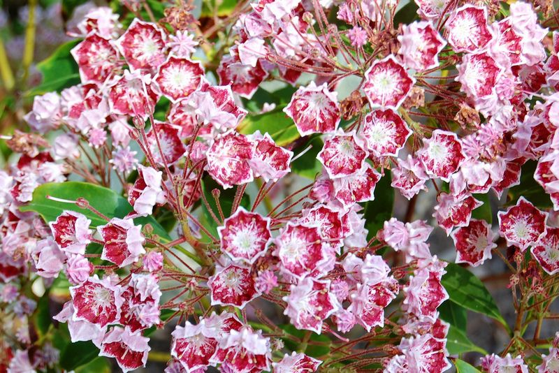 Виды и сорта: Широко распространенная К. широколистная (К. latifolia) вырастает до 2-2,5 м. В июне овальные блестящие листья почти не видны под 15-сантиметровыми шапками розовых цветков. Растение морозостойкое, но не выносит недостатка влаги. Почву над корнями весной мульчируют, увядшие соцветия удаляют. Заслуживают внимания сорта «Ostbo Red» с густо-розовыми и «Olympic Fire» с красными цветками. К. узколистная (К. angustifolia) «Rubra» вырастает до 1 м и похожа скорее на азалию, чем на рододендрон. Розовато-красные цветки распускаются на протяжении мая и июня. В апреле цветет карликовая (0,5 м) К. беловиколистная (К. polifolia), любящая болотистую почву.