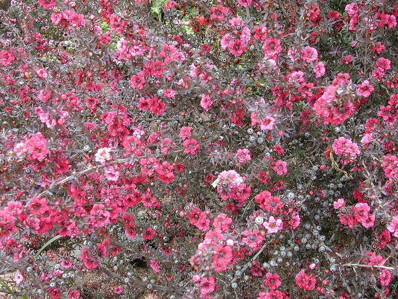 Виды и сорта: В культуре приняты главным образом сорта Л. метельчатого (L. scoparium), образующего пряморастущий куст высотой около 2,5 м. У него простые белые цветки, но это не единственная возможная окраска. Широко распространен сорт «Red Damask» с махровыми красными цветками и лиловатой листвой. Кроме того, есть махровый белый сорт «Snow Flurry», немахровый ярко-розовый «Chapmanii», немахровый красный «Nichollsii» с бронзово-лиловыми листьями, а также карликовые «Nanum» и «Kiwi» высотой всего 30 см. Самый красочный — сорт «Spectrocolor» с белыми с красной серединкой цветками. Л. шерстистый (L. lanigerum), или Л. Каннингема (L. cunninghamii), с белыми цветками выносливее и компактнее, чем Л. метельчатый. Особенно хорош его сорт «Silver Sheen».