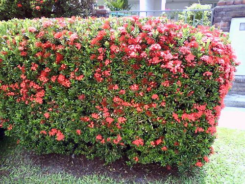 Цветущая живая изгородь — барбарис, вереск, гортензия или гидрангея, ипомея, кизильник, лаватера или хатьма, хебе, бирючина, боярышник, гибискус, жасмин, жимолость, калина, карагана, рябина, лаванда, форсайтия или форзиция, ирга