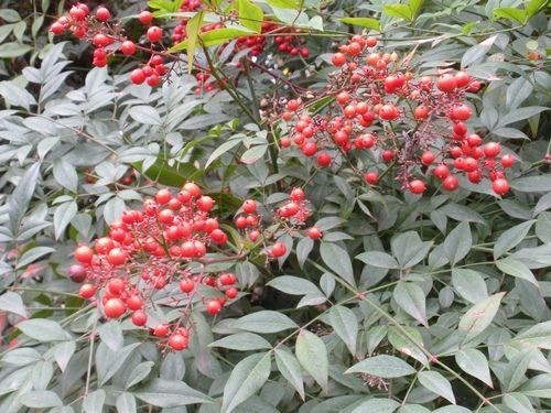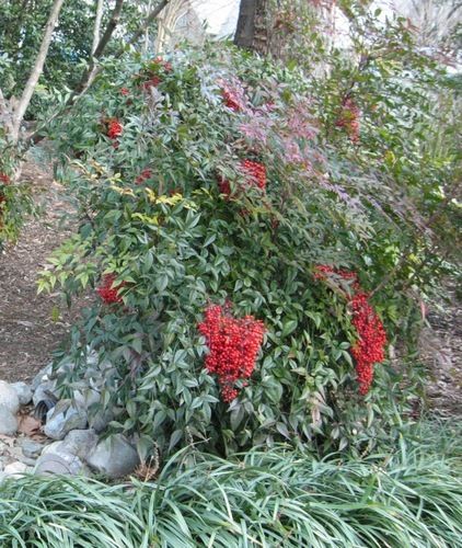 Еще несколько лет назад нандина была редкостью, в последние годы ее все чаще можно встретить в продаже. Причина заключается в возросшей популярности декоративных кустарников, и особенно кустарников с красочной листвой. Молодая листва нандины тронута красным, а в осенней окраске преобладают оранжевые тона. Кроме того, кустарник красиво цветет и образует плоды. В середине лета появляются крупные соцветия мелких, расположенных на высоких цветоножках цветков, сменяющихся красными ягодами. Ягоды долго не опадают. Ветви прямые, длинные перистые листья состоят из овальных листочков. Зимой побеги могут отмерзать, но весной возобновляются. Обрезка растению не требуется, но соцветия после опадения ягод удаляют. Через несколько лет ранней весной можно укоротить некоторые самые высокие побеги.