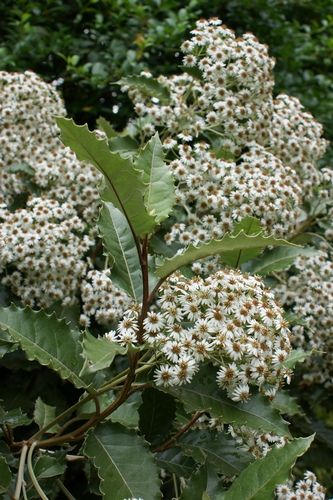 Виды и сорта: Морозостойкая О. Хааста (О. haastii) высотой около 1,5 м, листья которой похожи на листья самшита, обильно цветет в июле-августе белыми соцветиями. Вынослива также цветущая в июле О. монетчатолистная (О. nummulariifolia), вырастающая до 1,5 м, которая отличается мелкими соцветиями и густой желтовато-зеленой листвой. У цветущей в июне высокорослой (2,5 м) О. крупнозубчатой (О. macrodonta) серовато-зеленые листья, напоминающие листья падуба. О. сциллонская (О. scilloniensis) цветет в мае. У О. огненнохохолковой (О. phlogopappa) есть сорта с голубыми («Comber's Blue») и розовыми («Comber's Pink») соцветиями.