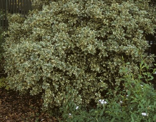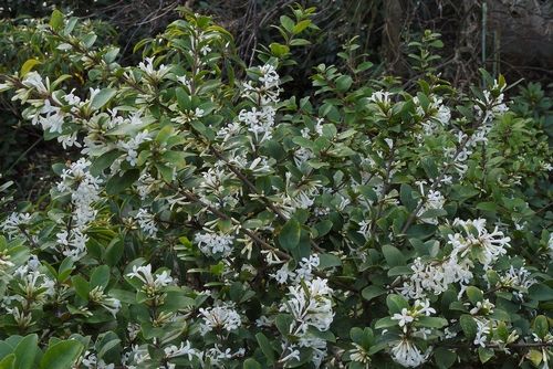 Османтус уместно высадить в промежутке между кустарниками с крупными и яркими цветками. Аккуратный округлый кустик густо одет вечнозелеными листьями, некрупные, но душистые белые или кремовые цветки имеют запах жасмина. Цветет, в зависимости от вида, весной или осенью. В стрижке не нуждается, хотя хорошо ее переносит, великолепен в живой изгороди. Теплолюбив, зимой требует защиты от северного ветра. Сухие и лишние ветви вырезают сразу после цветения.