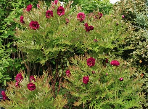 Мы привыкли считать пионы травянистыми многолетниками, однако в роду есть также несколько древовидных форм. Эти кустарники эффектны как в цвету, так и без цветков, для хорошего развития им нужно обеспечить условия: они не будут расти на плохо дренированной глинистой или бедной песчаной почве. У некоторых видов красивые тройчатые листья, которые могут достигать в длину 30 см, но ценят древовидный пион за крупные цветки с тонкими словно папиросная бумага лепестками. Недолговечные цветки могут быть простыми, полумахровыми и махровыми. Тяжелые цветки махровых форм нуждаются в подвязке. У взрослых растений ранней весной удаляют несколько самых старых побегов.