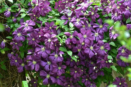 Виды и сорта: Наиболее популярны крупноцветковые гибриды. Они достигают 3 м в высоту, плоские цветки диаметром 10-20 см сменяются плодами с перисто опушенными столбиками. Самые крупные цветки у «Nelly Moser» (розовато-белый с красной полосой, цветет в мае-июне и августе-сентябре), «Mrs Cholmondely» (бледно-голубой, цветет в мае-августе) и «The President» (лиловый с серебристой изнанкой, цветет в июне-сентябре). Популярны также «Comptesse de Bouchard» (розовый, цветет в июне-августе), «Jackmanii Superba» (фиолетово-лиловый, цветет в июле-сентябре), «Vyvyan Penned» (фиолетово-лиловый, цветет в мае-июле), «Ville de Lyon» (красный с более темными краями, цветет в июле-октябре) и «Lasurstern» (насыщенный сиренево-синий, цветет в мае-июне и сентябре). Ботанические виды с мелкими цветками могут достигать 10 м и более в длину. Наибольшей любовью пользуется Л. горный (С. montana), цветущий в мае белыми цветками с запахом миндаля. У его сорта «Rubens» розовые цветки и бронзовая листва. У Л. крупнолепесткового (С. macropetala) полумахровые склоненные цветки распускаются в мае-июне, есть белые, голубые и розовые сорта. У цветущего в апреле-мае Л. альпийского (С. alpina) цветки также смотрят вниз. Л. тангутский (С. tangutica) во всех отношениях необычен: его желтые колокольчатые цветки раскрываются в августе, а в марте он требует сильной обрезки. Л. виноградик (С. viticella) «Etoille Violette» тоже поздно цветет и требует сильной обрезки.