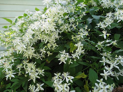 Популярны вьющиеся сорта ломоноса, есть также более редкие виды со слабыми стеблями, которые можно выращивать в бордюре на опорах из хвороста или возле низкорослых кустарников. Цветут летом белыми или голубыми цветками, осенью образуют плоды с шелковистыми столбиками. В конце осени стебли срезают на уровне земли.