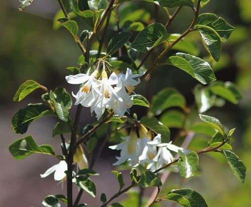 Виды и сорта: Культивируют в основном С. японский (S. japonica), который считается наиболее надежным и красивым из морозостойких видов. Это изящный раскидистый кустарник с поникающими кончиками ветвей и овальными блестящими листьями. Белые соцветия расположены по всей длине ветвей. У сорта «Pink Chimes» цветки бледно-розовые. С. обассия (S. obassia) отличается от С. японского узкой формой куста и почти круглыми листьями. Душистые белые цветки собраны в кисти длиной 20 см. Высота самого низкорослого редкого С. американского (S. americana) не превышает 2 м.