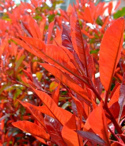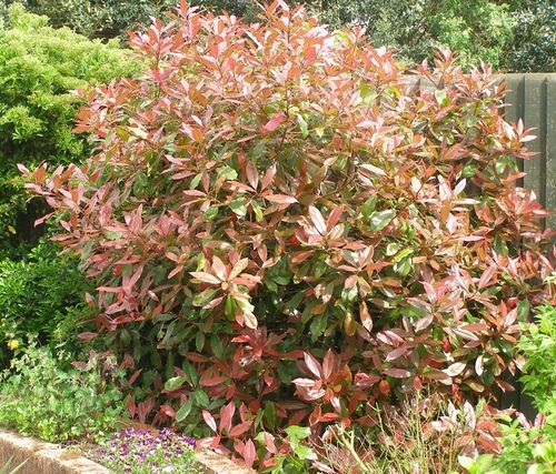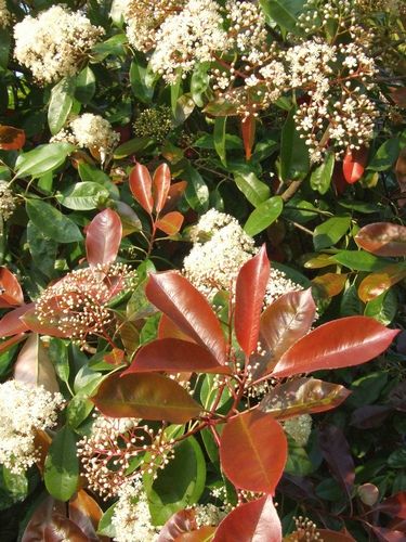 Виды и сорта: Лучше всего выращивать сорт Ф. Фразера (P. fraseri) «Red Robin». Отрастающая весной ярко-красная молодая листва впоследствии становится зеленой. Со временем куст достигает высоты 2,5 м. Еще выше вырастает сорт «Robusta», у которой крупные листья, похожие на листья лавра, и бронзово-красная окраска молодой листвы.