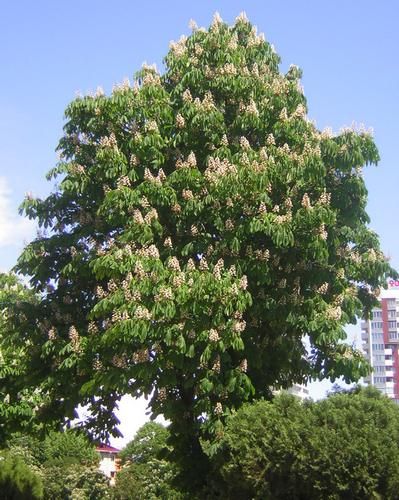Обычный конский каштан представляет собой великолепное зрелище в мае, когда над поверхностью листвы на нем появляются крупные свечи белых или розовых соцветий. Будьте осторожны — этому дереву нужен простор. У него крупные листья и раскидистые ветви, значит, под ним ничего не сможет расти, а при высоте 18 м оно способно почти полностью затенить небольшой сад. Не нуждается в специальной обрезке; засохшие и больные ветви вырезают ранней весной.