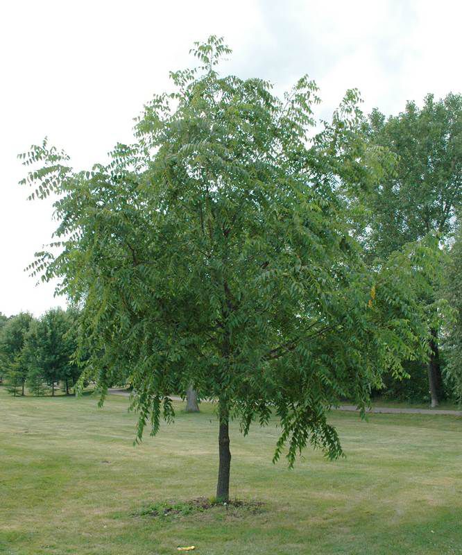 Прекрасное дерево с густой кроной, листьями, как у ясеня, и хорошо всем знакомыми съедобными плодами. Орехи появляются на деревьях старше 10 лет, урожай зависит от того, насколько теплой была весна. Высаживайте небольшие, выращенные в контейнере деревца и выбирайте для них хорошо защищенные места. Крону прореживают летом или осенью — ни в коем случае не весной.
