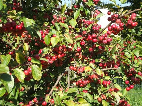 Виды и сорта: Популярный сорт — «John Downie» с белыми цветками и крупными оранжево-красными конической формы плодами, из которых получается хорошее желе. У сорта «Montreal Beauty» плоды еще более крупные, но самые красивые яблони — «Golden Hornet»: невысокие деревца с белыми цветками и ярко-желтыми плодами. Некоторые яблони выращивают скорее из-за очертаний кроны, чем ради плодов: у Я. обильноцветущей (М. floribunda) длинные изогнутые ветви, красные бутоны раскрываются в бледно-розовые цветки. Распространена колонновидная яблоня — «Van Eseltine». Есть яблони с красными цветками к плодами и медной листвой — чаще всего выращивают «Eleyi», «Lemoinei» и Я. пурпурную (M. purpurea), но самый удачный сорт, по-видимому, «Ргоfusion».