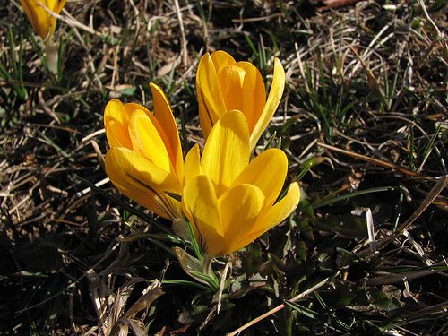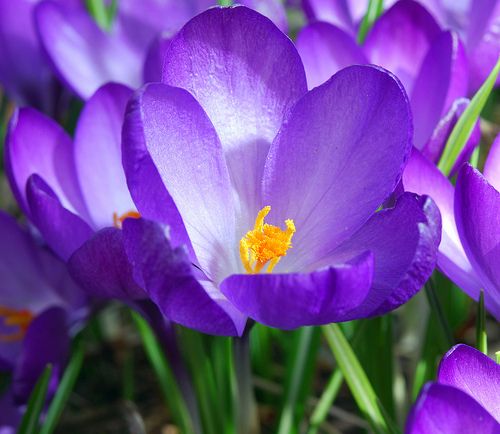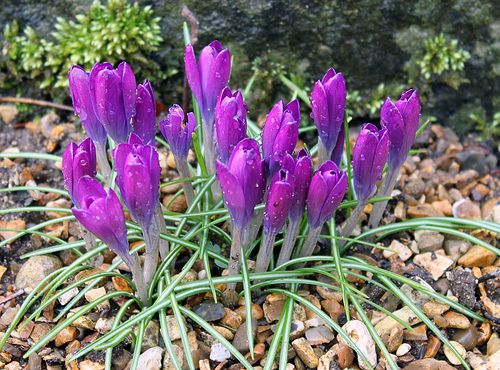 Чаще других выращивают голландские гибриды с голубыми и желтыми цветками, цветущие позже подснежников, но раньше тюльпанов. Однако голландскими гибридами разнообразие крокусов не ограничивается: есть крокусы, цветущие буквально из-под снега, а также осеннецветущие виды. У всех крокусов направленные вверх бокаловидные цветки с шестью «лепестками». Раскрываясь, цветки принимают звездчатую или чаше