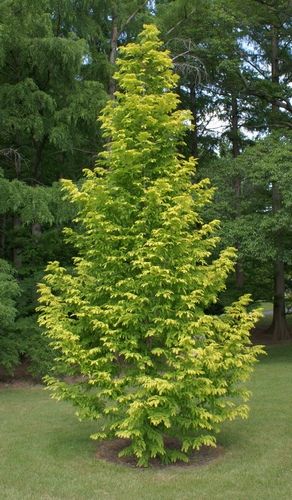 Романтическая история метасеквойи рассказана не один раз. Ранее известное лишь в ископаемом состоянии, это растение в 1941 г. было обнаружено во дворе одного китайского храма. В британских садах оно появилось в 1948 г., и первые из посаженных экземпляров сейчас достигают 20 м в высоту. Это быстро растущее дерево, имеющее форму узкого конуса в юном возрасте и более раскидистое во взрослом. Метасеквойя годится только для парков и больших поместий, но в молодости это живое ископаемое способно украсить и обычный сад. Бледно-зеленая летом, осенью листва становится оранжевой.