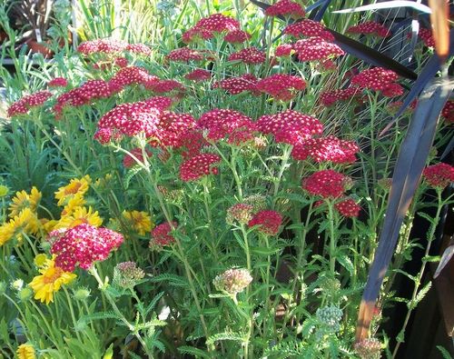 Виды и сорта: Т. лабазниковый (A. filipendulina) - величественное растение для заднего плана бордюра; популярен его сорт «Gold Plate«, Достигает высоты 1,2 м, разрастается а ширину до 60 см, плоские соцветия до 15 см в диаметре появляются в июне-сентябре. Сорт «Cloth of Gold» похож на предыдущий, но более компактный. Желтоцветковые гибриды Т. «Coronation Gold» и Т. «Moonshine» с серовато-зеленой листвой подходят для среднего плана бордюра. У Т. обыкновенного (A. millefolium) есть сорта высотой 60 - 90 см - «Cerise Queen» (темно-розовый), «Paprika» (густо-оранжевый) и «Lilac Beauty» (розовато-лиловый). Гибрид Т. «Lachsschonheit» цветет розовато-оранжевыми соцветиями. У Т. птармики (A. ptarmica) и его сортов ланцетные листья и щитковидные соцветия из белых полу шаровидных корзинок. Для переднего плана бордюра или альпинария подойдет карликовый Т. войлочный (A. tomentosa) высотой 15 - 30 см и его сорта с желтыми соцветиями до 8 см в диаметре и сероватыми перистыми листьями. К другим видам с желтыми соцветиями относятся Т. золотистоволосый (A. chrysocoma), или Т. золотистый (A. aurea), с ароматными при растирании листьями, и длительно цветущий A. King Edward. Есть карликовые белоцветковые и серебристолистые виды: Т. Келлерера (A. kellereri) и Т. серебристый (A. argentea) или Т. Клавеины (A. clavennae).