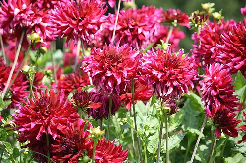 Георгины цветут позже многих других садовых цветов — с конца июля до первых заморозков. Среди них есть высокие бордюрные сорта с соцветиями до 25 см в диаметре, более низкорослые клумбовые и мелкоцветковые карликовые сорта. Среди бордюрных георгин популярны сорта декоративной, кактусовой и полукактусовой групп.