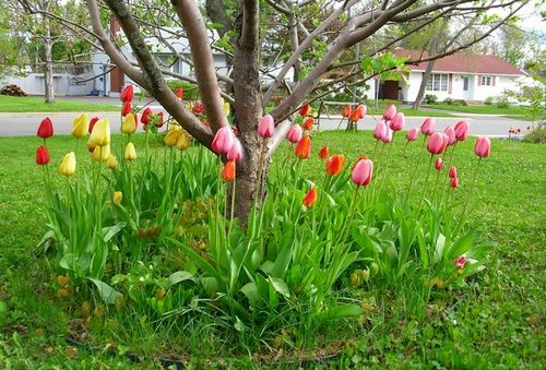 Растения создают симбиотические группы по своим биологическим признакам. Вам не удастся создать приствольную клумбу вокруг ореха, робинии (лжеакация) и лещины. Все остальные лиственные деревья подходят для создания клумбы.