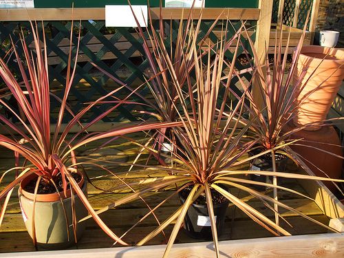 Виды и сорта: Вероятно, вы найдете только К. южную или австралийскую (С. australis). Длина листьев 30-90 см, в июне могут появиться головчатые соцветия мелких белых цветков. Листья бледно зеленые. Более интересная окраска листьев у сортов «Sundance» (с красными и зелеными полосками), «Torbay Dazzler» (с кремовыми и зелеными полосками), «Purpurea» (лиловые), «Alberlii» (красно-розово-кремово-зеленые), «Red Sensation» (пурпурно-красные), «Dark Star» (дымчато-красные), «Electric Pink» (ярко-розовый с пурпурными и желтыми полосками). Чтобы растение больше походила на пальму, весной обрезайте засохшие нижние листья.