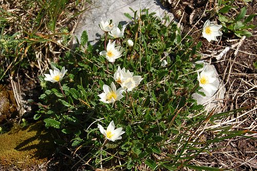 Красивое стелющееся растение для прикрытия скал в альпинарии или открытых промежутков в бордюре. Ползучие деревянистые стебли одеты кожистыми зимующими листьями, зелеными и блестящими сверху и серебристыми снизу. Лопастные листья похожи на листья дуба, в конце весны появляются сидящие на коротких цветоносах цветки, после которых образуются головки из плодиков с шелковистыми столбиками. Хорошо растет на солнечном участке с бедной почвой