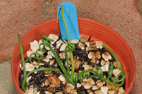 Опытные садоводы без труда узнают многие из описанных на этом сайте растений, но мало кому приходилось видеть это луковичное растение. Его виды сильно различаются по высоте цветоноса и виду цветков, но все они маловыносливы и поэтому могут расти в открытом грунте только в районах с действительно теплым климатом. Листья узкие, цветки одиночные на коротких цветоносах или собраны в соцветия на высоких стреловидных цветоносах. Если вы хотите выращивать альбуку в открытом грунте, высаживайте луковицы в марте, а осенью, когда листья увянут, выкапывайтe. Зимой храните в прохладном месте. Высаживают в ноябре на глубину 8 см. Расстояние между растениями 5 см. Высота растения 10 см.