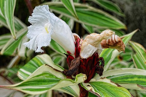 Костус - растение для теплицы или оранжереи в комнате он плохо себя чувствует. Листья крупные и у некоторых разновидностей образуют спираль вокруг стебля. Цветет поздней весной яркими, но быстро увядающими цветками. К зиме листья отмирают и растение впадает в состояние покоя.