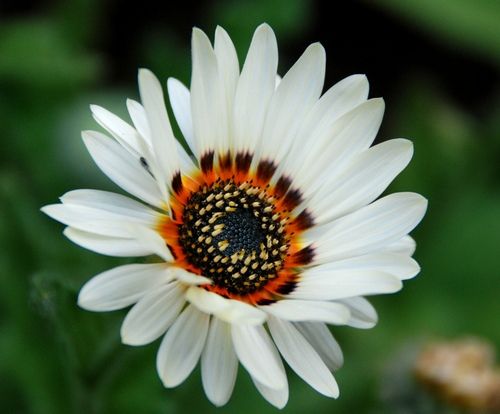 Одно из самых красочных однолетних растений для солнечной клумбы, бордюра или альпинария. У соцветий, похожих на соцветия ромашки, «лепестки» слегка отогнуты, а серединка окружена темным ободком. В соцветиях самым причудливым образом сочетаются оттенки различных цветов. В пасмурную погоду и в сумерки соцветия закрываются.