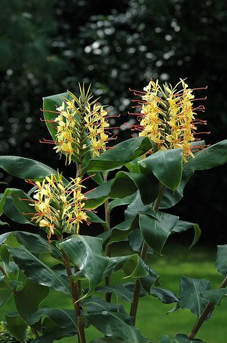 Эффектное цветущее летом растение родом из Индии. Его можно выращивать в центре клумбы или в крупном контейнере. Высокий стебель облиствен, на его верхушке в июле-сентябре появляется великолепное соцветие высотой 30 см, состоящее из расположенных рядами душистых цветков длиной до 5 см с длинными тычинками.