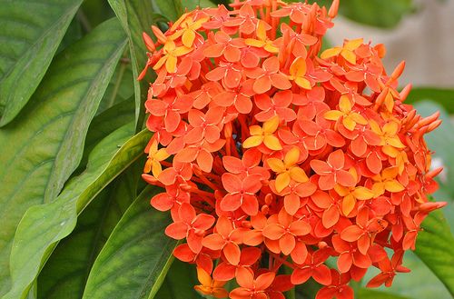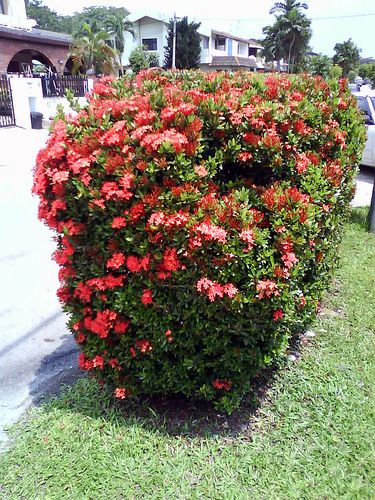 Иксора чрезвычайно популярный в США вечнозеленый кустарник. Родом он из Азии где его уже культивируют более 400 лет и не только в декоративных целях. В Индии и Китае иксора входит в список растений используемых в народной медицине. Иксора растение тропическое, поэтому достаточно теплолюбива, самые ее холодостойкие виды выдерживают понижение температуры до -7 °С. Растение представляет собой вечнозеленый куст высотой 50-200 см с блестящими кожистыми листьями. Крупные соцветия появляются в конце весны, цветут до осени.