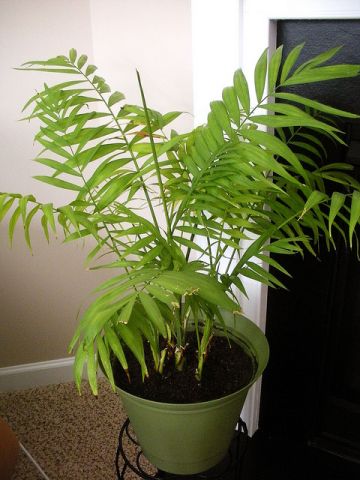 Тростниковые пальмы: У некоторых пальм стебли, вначале тонкие, как тростник, с возрастом становятся похожими на побеги бамбука. Эти пальмы очень любят американские декораторы, которые используют их для создания смелых композиций в просторных комнатах. Хамедорея Зейфрица (Chamaedorea seifrizii) и Хризалидокарпус желтоватый или Арека желтеющая (Chrysalidocarpus erumpens) в хороших условиях вырастают до 2-3 м в высоту, а перистые листья, или вайи хризалидокарпуса могут достигать в длину 1 м и более. Рапис высокий (Rhapis excelsa) и Р. приземистый (R. humilis) иногда называют бамбуковыми пальмами из-за их гибких стеблей в 1,6-2,3 м высотой.