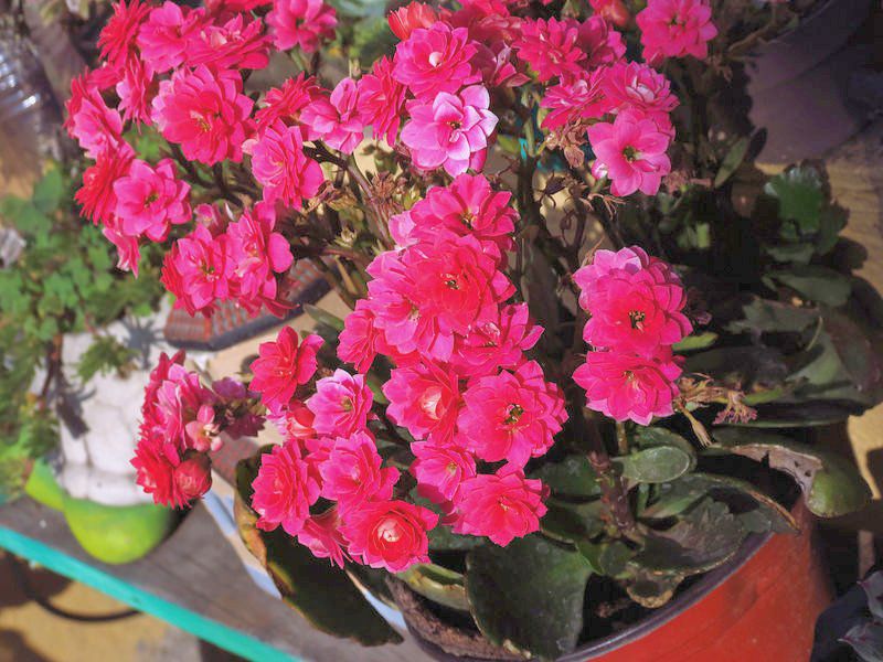 Виды и сорта: Исходный вид — К. Блоссфельда (К. blossfeldiana) — высотой 30-45 см цветет крошечными цветками, собранными в шапки по 25-50 штук, в июне-сентябре. Листья овальные, мясистые. Есть гибриды различной окраски. Для маленьких участков подойдут карликовые сорта «Tom Thumb», «Tetra Vulcan» высотой 15 см и «Compact Lilliput» с красными цветками. Из семян стоит выращивать гибриды «Mixed Swiss Hybrids», ярко окрашенные соцветия которых достигают в диаметре 12 см. После цветения растения можно занести в помещение до следующей весны.