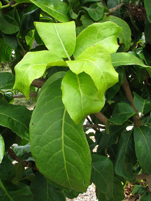Это необычное древовидное комнатное растение на первый взгляд своими блестящими яйцевидными листьями на прямых стеблях напоминает фикус. Однако по облику оно сильно отличается от фикуса. Стебли сильно ветвятся, на листьях выделяется липкая смола, отсюда популярное английское название растения - Birdcatcher Tree «ловчее дерево». Иногда цветет крошечными белыми трубчатыми цветками, вслед за которыми развиваются липкие плоды.