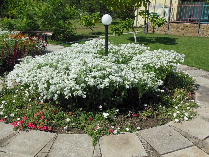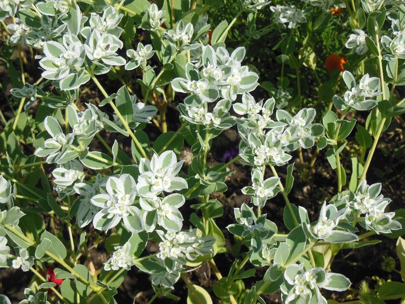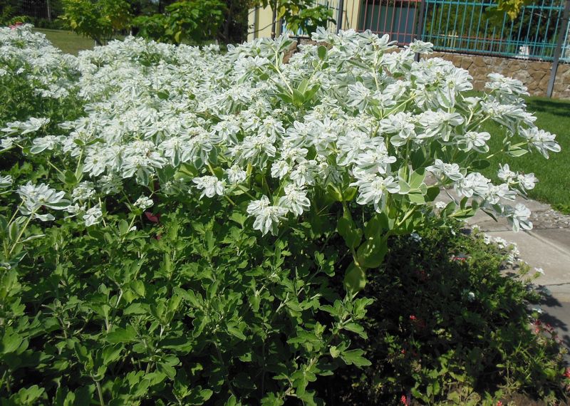 Молочай окаймленный — необычный однолетний цветок, кусты которого походят на «снежные шары». Растет молочай довольно быстро и уже к июлю вырастает до 80 см в высоту. Зацветает также в середине лета и продолжает цвести вплоть до заморозков. Молочай устойчив к болезням, также совсем не подвергается нападению вредителей.