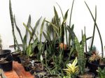 Виды и сорта: Сансевиерия - одно из самых популярных комнатных растений, а безусловный фаворит в роду С. Лауренти (S. laurentii). Листья могут достигать 1 м и более в длину, но обычная длина - 30-45 см. Исходная форма С. трехполосная (S. trifasciata) (которую иногда ошибочно продают под названием С. цейлонская - S. zeylanica) не такая крупная, выглядит скромнее и не столь популярна. Среди культурных форм, помимо привычного «тещина языка», есть и другие красочные разновидности. У формы Moonshine компактные размеры и изящно окрашенные в светло- и темно-зеленые тона листья, у формы Bantel's Sensation на листьях расположенные по горизонтали крестовидные кремовые полоски, у разновидности Craigii края листьев окаймлены широкой полосой кремового цвета. Самая высокая - С. цилиндрическая (S. cylindrical). Однако не у всех разновидностей сансевиерии длинные пряморастущие листья - например, у разновидности Hahnii розетка мясистых листьев до 10 см длиной со светлыми горизонтальными полосками. У Golden hahnii желтые полосы по краю листа, у Silver hahnii серебристо-зеленые листья с более темными полосками. Очень необычно выглядит ампельная С. большая (S. grandis), которую можно выращивать в висячей корзинке.
