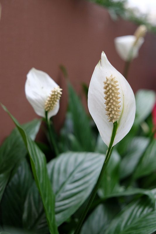 Спатифиллум хорошо растет при рассеянном свете в хорошо отапливаемой комнате. Его оберегают от сквозняков, горшок помещают во влажный торф или на поднос с галькой. Блестящие листья выходят прямо из почвы; цветет весной и иногда повторно осенью.