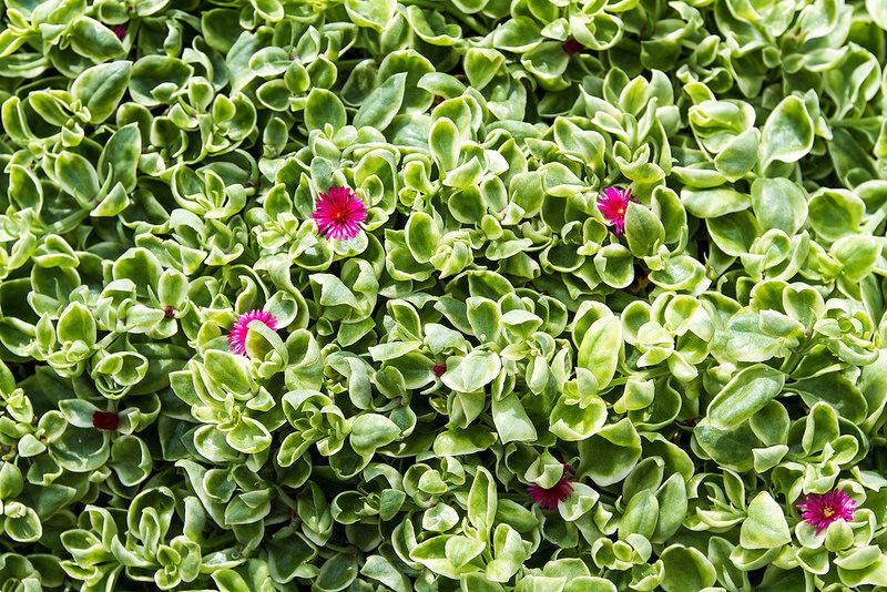 В последнее время эту теплолюбивую родственницу садового мезембриантемума стали выращивать как коvнатное растение. Аптения — низкорослый стелющийся суккулент с листьями, словно обсыпанными сахарной пудрой. Ее можно посадить у основания более высокого растения. Летом среди листьев появляются крошечные цветки.