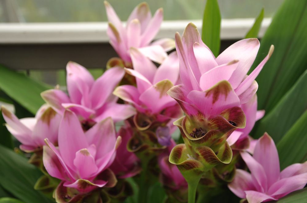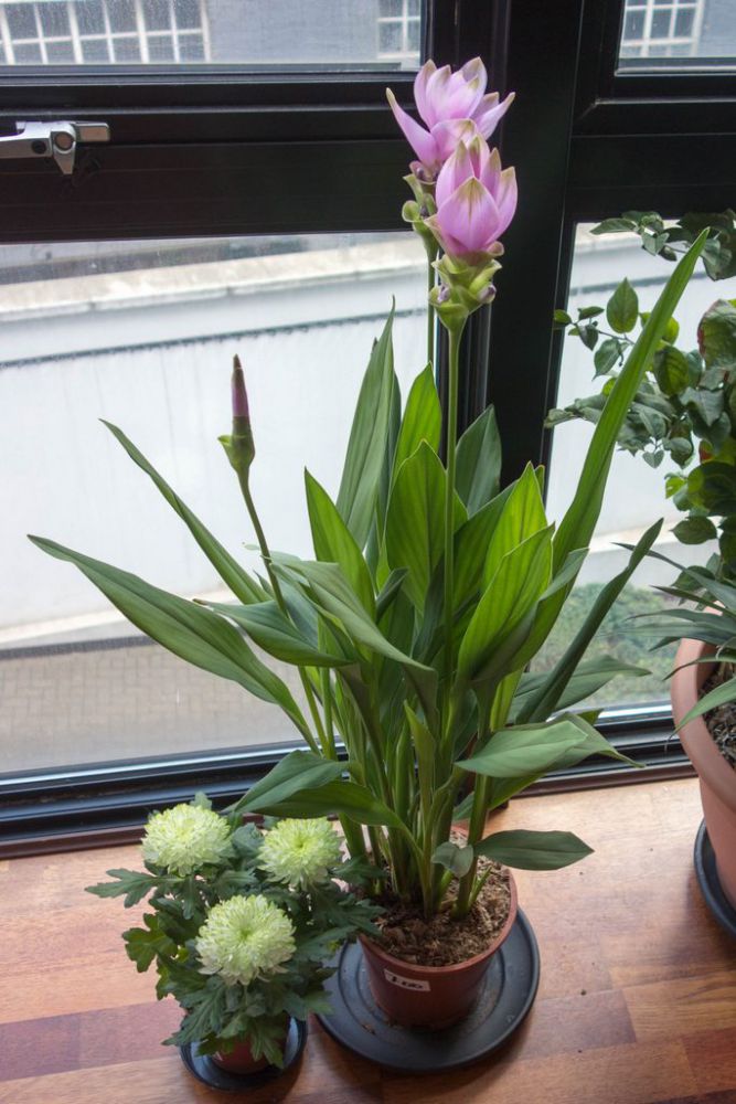 Виды и сорта: Прицветники К. роскойской (С. roscoeana) из зеленых становятся оранжевыми, а затем оранжево-красными. Есть виды с более мелкими соцветиями, например К. частухолистная (С. alismatifolia). Можно выращивать и обычную, съедобную К. длинную (C. longa), цветет она белыми или сиреневыми соцветиями, бонусом будут ароматные корневища.
