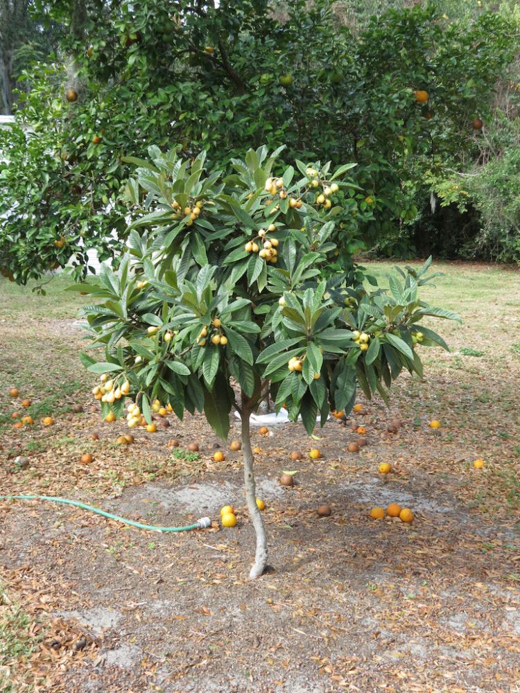 На плантациях японскую мушмулу, или локву, выращивают ради съедобных плодов, а в помещении главным образом ради красивых, с глубокими жилками листьев, темно-зеленых сверху и покрытых красноватыми волосками снизу. Распускающиеся зимой белые цветки диаметром 2 см сменяются желтыми яйцевидными плодами. В продаже встречается редко, представлена в каталогах.